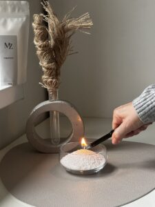 Stačí vybrat nehořlavou nádobu podle nálady – skleničku, misku, vázu, hrnek – nasypat DekoPerlu, vložit knot a zapálit. Dekorativní možnosti DekoPerly jsou nekonečné.