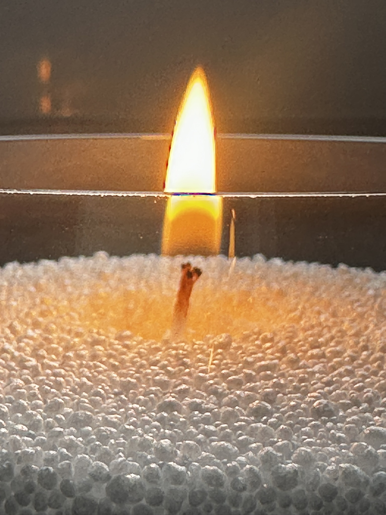 Podstatou DekoPerly je, že se nesmí roztavit až k okrajům nádoby. To znamená, že byste měli mít kolem knotu alespoň 4cm perel (nádoba min 8cm) a alespoň 1,5cm perel pod knotem.